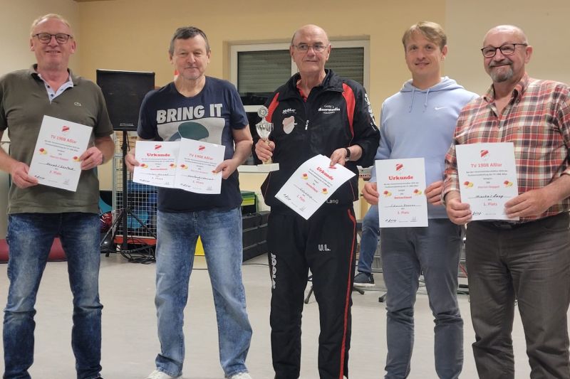 Die Vereinsmeister und Platzierten v.l.: Klaus Gerlach, Peter Nowak, Udo Lang, Edwin Benner und Bernard Mioska